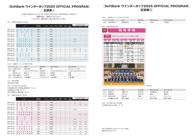 【SoftBank ウインターカップ2025 OFFICIAL PROGRAM】お詫びと訂正 (正誤表および差し替えページの公開)